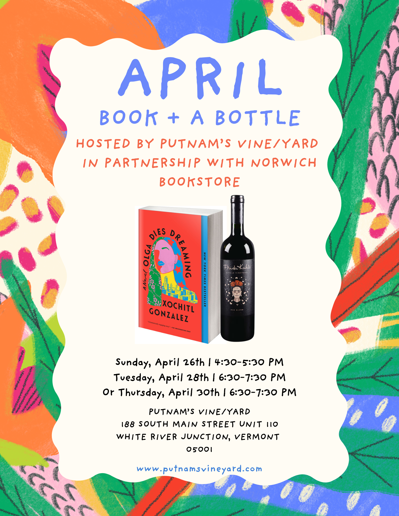 We’re excited for our partnership with our friends at Norwich Bookstore! Each month, Book + a Bottle brings together both familiar and new faces for lively conversation, thoughtful reads, and wines chosen to complement the story just as much as the discussion.